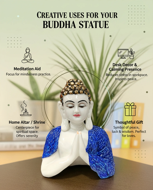 BLUE Fiber Poly Resin Premium NAMSKAR Buddha Idol