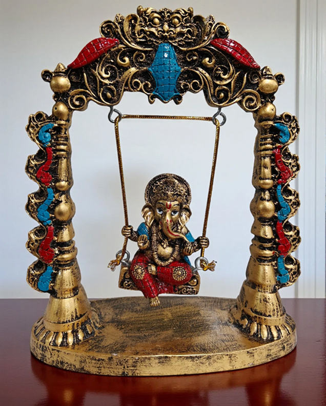 Multicolor Fiber Poly Resin Premium Ganesha Idol