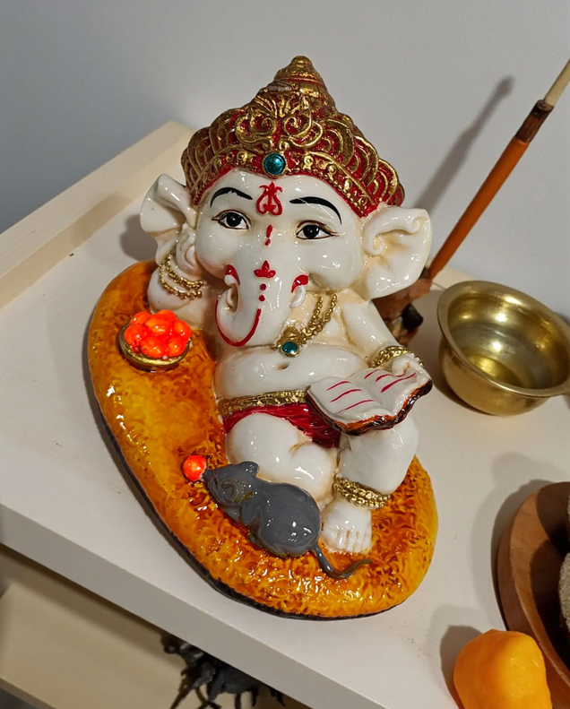 Multicolor Fiber Poly Resin Premium Ganesha Idol